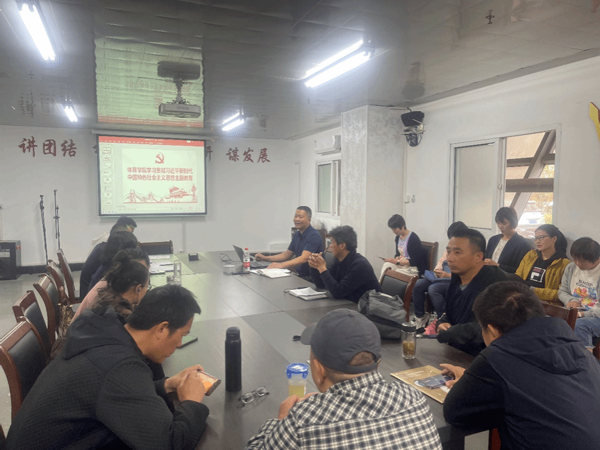 5月10日下午,体育学院理论学习中心组在希望大道校区风雨操场会议室,学习贯彻习近平新时代中国特色社会主义思想主题教育精神,重点学习习近平总书记关于教育重要论述。党总支书记杨汉华主持会议。