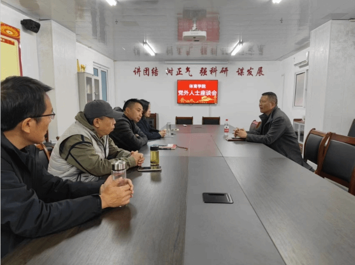 为深入学习贯彻习近平总书记关于做好新时代党的统一战线工作的重要思想,进一步加强学院与党外人士的沟通交流,促进党外人士围绕学院高质量发展统一思想、达成共识、凝聚智慧、形成合力,12月8日上午,体育学院在南校区风雨操场会议室召开党外人士座谈会,党总支书记杨汉华主持会议,副院长仇乃民,党外人士教师代表参加会议。