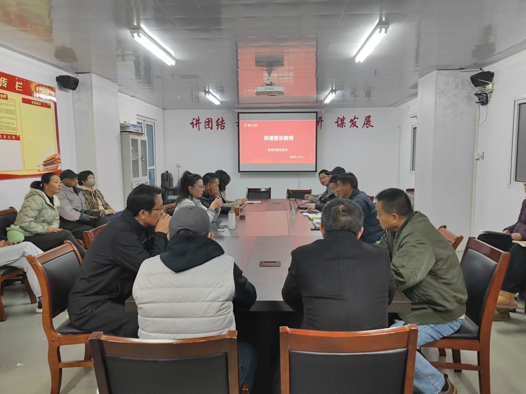 12月4日下午,体育学院党总支在风雨操场会议室开展师德师风警示教育活动,学院党总支书记董学兴主持,全体教职工参加。