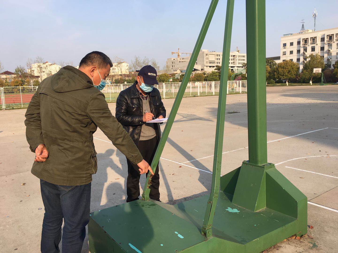 4月5日下午,体育部副主任唐进松、场馆中心负责人邵俊文对南、北校区所有室内外体育教学设施和器材进行逐一摸底排查,他们来到体育馆、风雨操场、田径场、室外篮球场和网球场等地进行安全评估和损坏点检查,对需要维修的设施和器材进行登记和做好标记,并一一和维修师傅现场对接,存着安全隐患短期无法维修的器材进行暂时封存,维修工作于4月15日前完成。