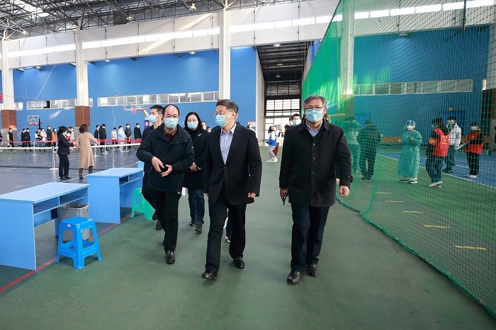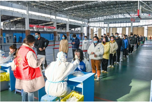 学校通知线上上课第一时间,体育学院立即关闭室内体育场所,指导物业做好场馆和器材的全面消杀。并根据学校工作需要提供风雨操场和体育馆等场地为每天做核酸检测场所。同时利用自有条件,积极配合学校和其他部门工作,为学校防疫生活物资提供场地保障,特别是为后勤集团提供近200张浴室卡,为住校教职工提供了洗浴保障。