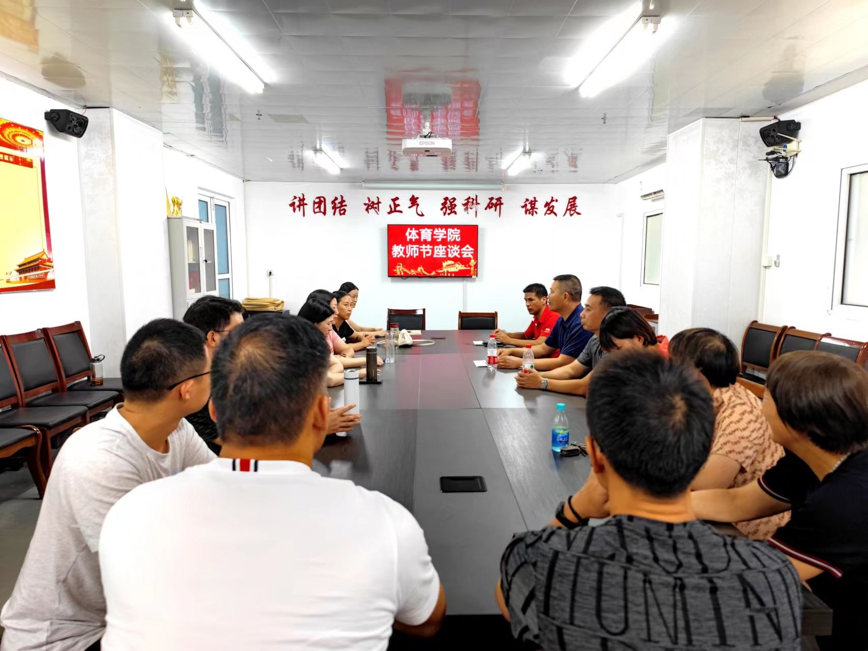 9月7日下午,在教师节即将来临之际,体育学院在南校区风雨操场会议室开展欢庆教师节座谈会,学院20余人参加座谈,教师们欢聚一堂畅谈工作、生活、学习,共党总支书记杨汉华主持座谈会。
