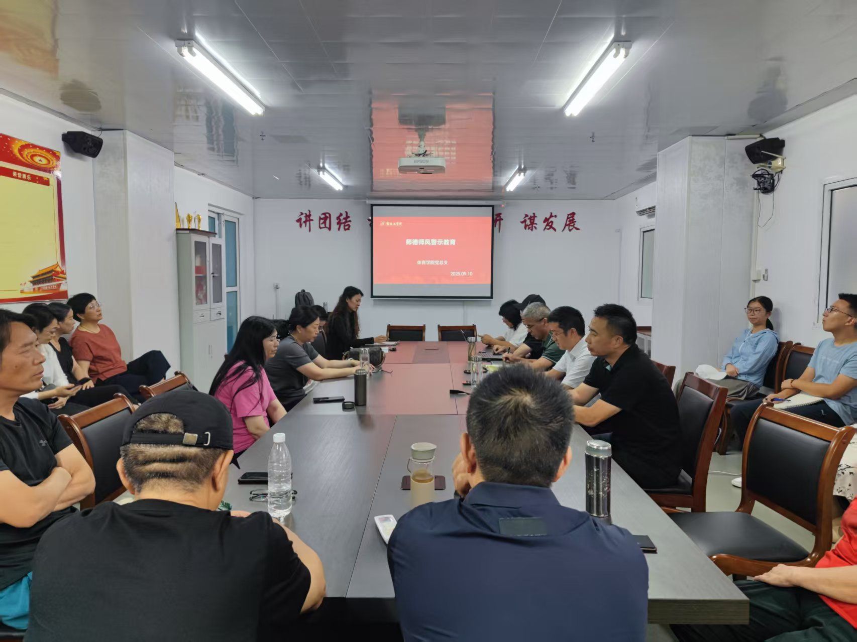 9月10日下午,体育学院在南校区风雨操场会议室召开师德师风专题警示教育会。会议由学院党总支书记董学兴主持,学院全体教职工参加。